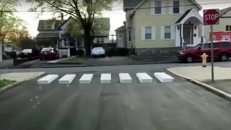 Trik spočívá v chytré malbě tradiční zebry, která při pohledu zdálky v řidičích evokuje pocit, že hledí na položené betonové kvádry. Proto by před nimi měl každý zpomalit a tím učinit přechody bezpečnějšími. Vynucení snížení rychlosti na cestách pomocí obyčejného 3D obrázku v tomto smyslu funguje a Isa před kamerami staví do role ochránkyně životů všech pěších spoluobčanů z Massachusets. Jenže ani tady není realita tak přímočará.
