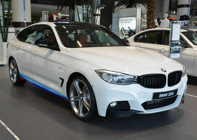 BMW 3 GT dostalo v Abú Dhabí doplňky M Performance. Sportovnější o moc není, i když trikolora na žebrách ledvinek vypadá docela zajímavě