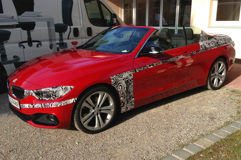 BMW 4 Cabrio F33 2014: otevřený fýrer nafocen do detailu prakticky bez maskování