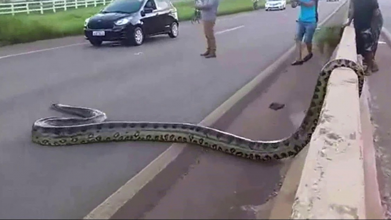 Velký predátor vylezl trávy na čtyřproudovou komunikaci. Okolní motoristé hned zastavili opodál a gestikulací zbrzdili všechny další řidiče jen proto, aby škrtič zdolal středový betonový panel a odplazil se do houští v protisměru. Nejtěžší i nejdelší had světa může mít až sedm metrů na délku, proto se Brazilci setkali s relativně malým kusem. Jejich klidné počínání naznačilo, že ofdiofobii netrpěl žádný z nich.