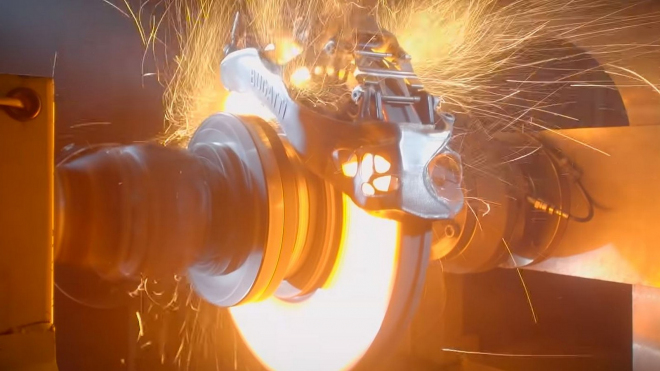 Technici namontovali třmen s brzdovým diskem a brzdovými destičkami na laboratorní stojan, který dokáže simulovat rychlost až 400 km/h. Brzdění z takového tempa je opravdovou výzvou pro jakýkoliv brzdový třmen, ten z tiskárny nevyjímaje. Během zkušební zátěže létaly jiskry, které se měnily v plameny. Kotouč měnil barvy, ale třmen držel tvar. V oblaku dýmu se disk roztočil několikrát až na 375 km/h a teplota disku přesáhla tisíc stupňů Celsia. Komponenty i tuto zátěž ustály se ctí. Na některých místech se sice objevily upečené části, ale výrobek vydržel v celku a zachoval si svou funkci.