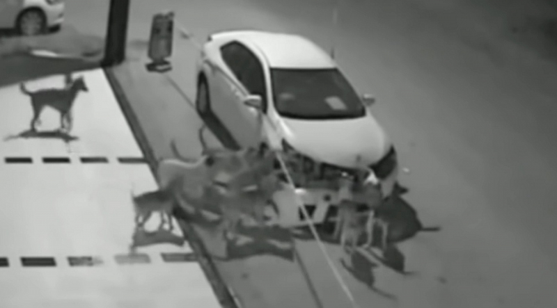 Že by auto mohli začít konzumovat hladoví psi, se zdá být velmi nepravděpodobné. Ale děje se to a tento případ zaznamenala i kamera.