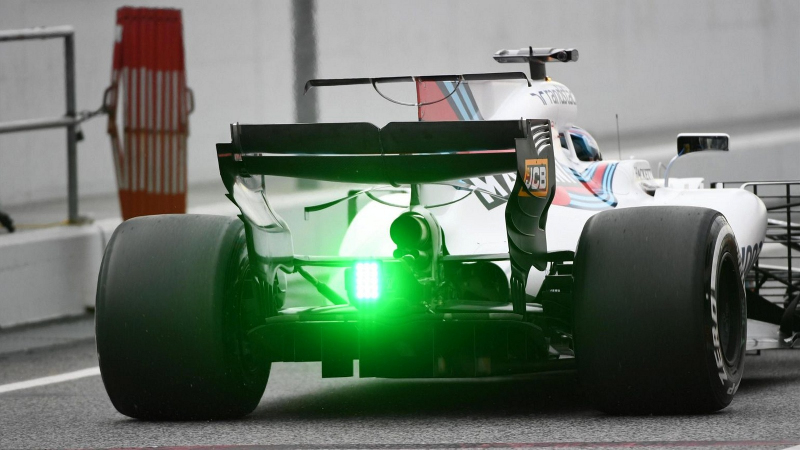 Stejné koncové světlo ale může svítit i zeleně, to pokud za volantem při testech sedí pilot bez licence. Letos to byl Lance Stroll na Williamsu, před pár léty Stoffel Vandoorne na McLarenu