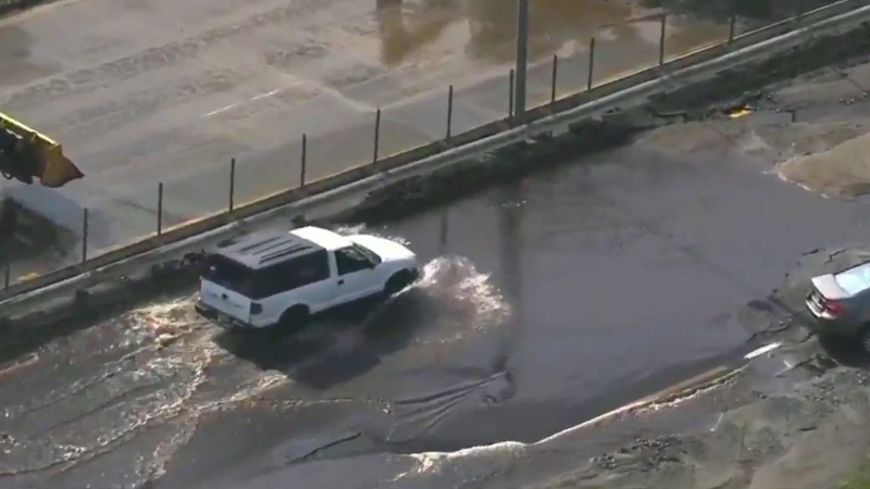 WATCH: Truck crashes into sinkhole created by Worcester water main break https://t.co/7DnSTRNGAA pic.twitter.com/PFFxuui9dy