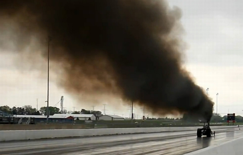 Motor tohoto dragsteru zní jak šicí stroj na zlaté rouno a dojet ho do cíle v záplavě všeho toho kouře ani není možné. Však se podívejte sami.