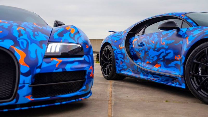 Neobyčejná kombinace kamufláže modrých odstínů s oranžovými prvky vznikla po vzoru podobně maskovaného Mercedesu-Benz majitele JD Customs, Jordyho Dosta, téže van den Wallova přítele. Prý je to ideální zábal dvou monster s motory W16 pod zadní kapotou, který je dovede k vítězství. To jsme na to zvědavi...