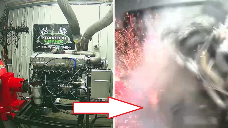 Nedokázal toho málo, motoru bylo naměřeno neskutečných 2 200 koní výkonu, pak se ale rozlétl. Dříve, než stihl dosáhnout plánovaných 2 400 koní. Skutečně doslova explodoval, většina pohonné jednotky z testovací stolice vyrvala jak divoký kůň z otěží a nechala na ní jen ze setrvačnosti zoufale rotující klikovou křídel s torzy pístů. Lavon Miller, majitel a šéf firmy, že neví, co přesně se stalo, ale na tento motor byl plnící tlak 9,6 baru (sic) prostě příliš. Teď bude firma analyzovat i videa, která vidíte níže, aby pravý důvod odhalila a příště se takovému konci vyhnula. Miller říká, že motor se roztrhal na takové prvočinitele, že použít z něj už půjde jen hlava a vstřikovače, vše ostatní je na maděru.