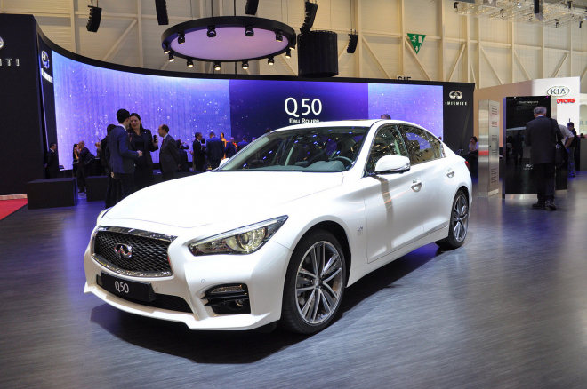 Japonská automobilka na autosalonu v Ženevě představila hned dvě verze sedanu Q50. Koncept Eau Rouge jsme si již probrali, nyní tak přišla řada také na model osazený dvoulitrovým čtyřválcem. Ten, stejně jako jeho dieselový kolega, pochází ze skladů Mercedesu, technici Infiniti ovšem na jeho vnitřnostech lehce zapracovali. Výkon se tak zvednul z 211 na 214 koní, točivý moment pro změnu klesnul z 350 na 320 Nm.