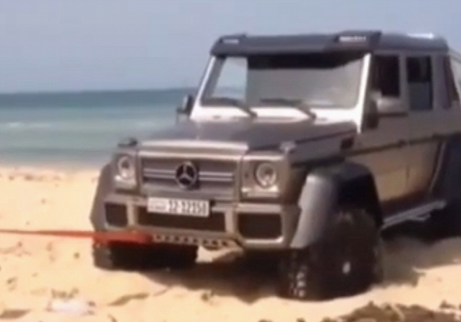 Mercedes G 63 AMG 6x6 zastavila v písku zřejmě technická závada, systémů má totiž tolik, že by se bez ní do podobných patálií dostat prostě neměl