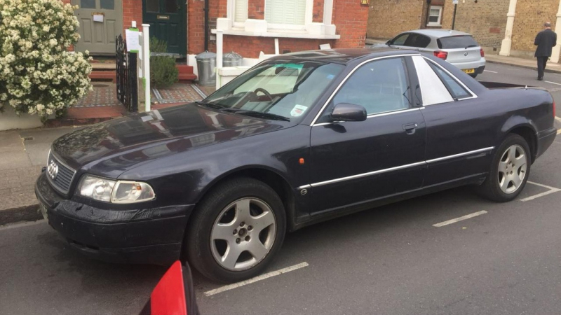 Luxusní sedan první generace z let 1994 až 2002 si někdo přestavěl na pick-up a přesně tak jej používá. Místo pro vážené zadní pasažéry se změnilo na podestu pod otevřeným nebem. Z pětimístné A8 se stalo dvoumístné pracovní nářadí, se kterým není problém odvézt hromadu písku nebo kopu kamení. Podle štítku na zavařeném víku kufru se jedná o benzínový osmiválec s objemem 4,2 litru a stálým pohonem všech kol - nic, co by v pick-upu urazilo.