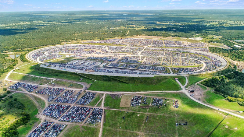 Už jsme vám jej ukazovali dříve, auta jsou sem ale svážena dál a dál. Zpočátku jich tu byly nízké desetitisíce, teď už se jejich počet blíží ke stovce tisíc. To je neuvěřitelné kvantum aut soustředěné na jedno místo, které jsme zatím mohli vidět jen z dílčích pohledů. Larry Field, který se živí jako profesionální fotograf prodejců realit a obvykle tedy fotí domy, ale vzal jeden ze svých dronů a Royal Purple Raceway v jejím současném stavu nasnímal z opravdu velké výšky. A teprve to dovoluje vidět onu „autokalypsu” v celé její ohromnosti.