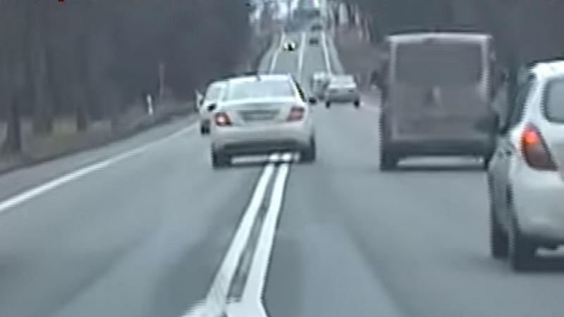 Řidič Mercedesu tak využíval každou skulinku a velmi často spoléhal na i na „pomoc” ostatních. Evidentně s tím ale měl dost zkušeností, takže provozem dokázal prokličkovat často lépe než školení řidiči s majáky. Hlídka přitom měla k dispozici autu určené přímo pro stíhání takových řidičů, jednalo se o neoznačený Opel Insignia 2,0T AWD, které je sice s výkonem vrcholícím na 162 kW (220 koní) nominálně slabší, ale už točivý moment 350 Nm naznačuje cosi o vyšším průměrném výkonu. Polská policie má k dispozici celkem 75 takových aut, která používá na celém území země.