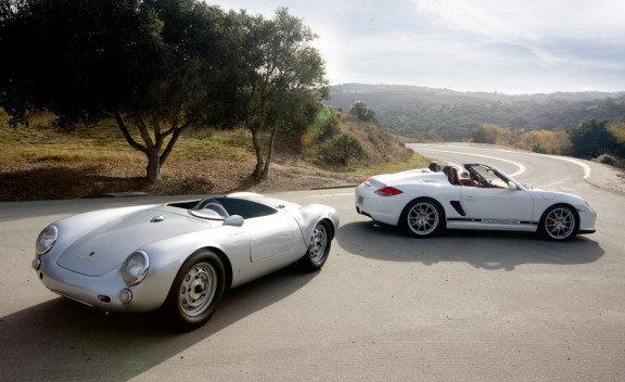 Porsche 550 Spyder a tentýž vůz po boku současného Porsche Boxster. Novinka by měla být čímsi mezi nimi