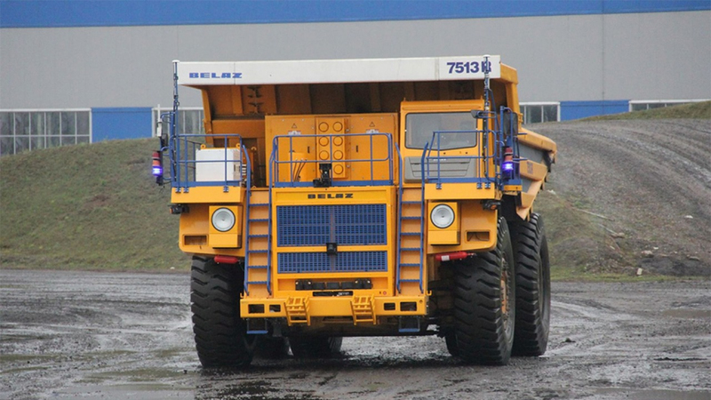 Jedním takovým je i model BelAZ-7513, který je ve výrobě od roku 1996. Jde o jeden z menších strojů běloruské značky, přesto to obecně vzato není žádný drobek. Jeho nosnost se pohybuje „pouze“ mezi 110 a 130 tunami. Stále je však třeba počítat s tím, že jen kolo má 2,4 metru na výšku. Ta celková pak činí 5,72 metru, což v podstatě odpovídá rodinnému domu s jedním nadzemním patrem a ještě malou půdičkou. S budovou pak lze ostatně srovnat i délku, která činí 11,5 metru.