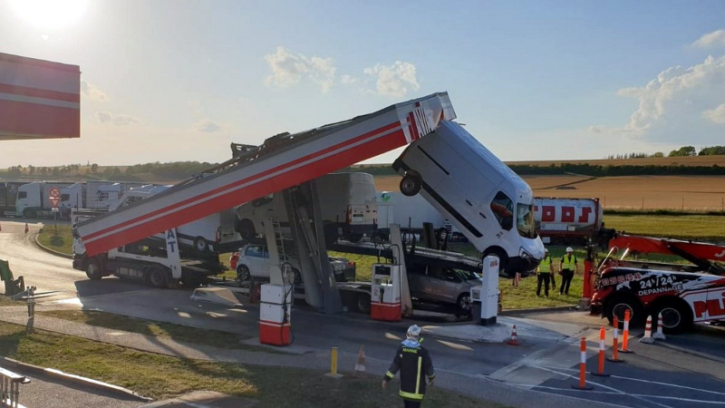 Incident se odehrál na dálnici A4, kterou dobře zná i řada Čechů - vede z Paříže až k hranicím s Německem ve Štrasburku. Dílo zkázy je z nich jasně patrné a neobvyklost celé scenérie vyvolává spíše úsměv. Není běžné, aby někdo „sejmul“ celou stanici. A co více, aby zároveň mezi zhroucenou střechou a valníkem vytvořil spojnici v podobě francouzské dodávky. Jeden z Renaultů Trafic se do lemu střechy, která se na jedné straně svažovala, zasekl takovým způsobem, že z ní zůstal viset.
