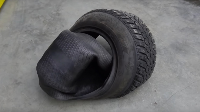 Koupě nového obutí není nikdy levnou záležitostí, a tak některé šetřílky možná už napadlo, že by se jedna pneumatika dala použít hned dvakrát. Blázni z Garage 54 to zkusili a jezdit tak vážně lze, přesto to radíme neopakovat.