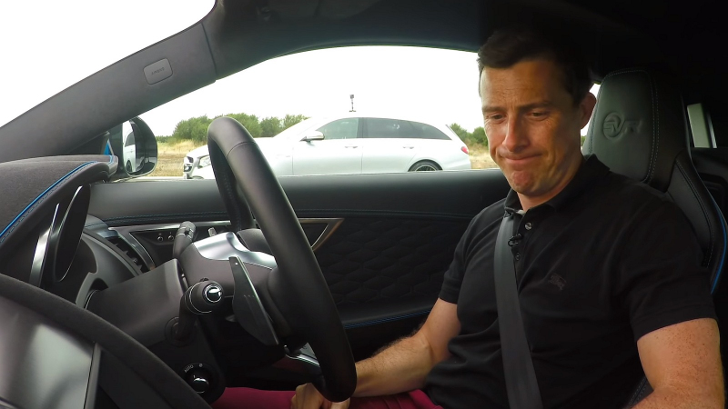 Mat Wilson z Carwow totiž usedl do Jaguaru F-Type SVR, což vážně není žádné ořezávátko. Pod kapotou má pětilitrový osmiválcový motor s kompresorem, který produkuje 423 kW (575 koní) při 6 500 ot./min a 700 Nm v rozmezí 3 500-5 000 ot./min. Pohonnému ústroji napomáhá osmistupňová automatická převodovka a především pohon všech kol. Díky němu motor rozhoupe všech 1 780 kilogramů hmotnosti na 100 km/h během 3,7 sekundy a ručička se zastaví na hranici 322 km/h.