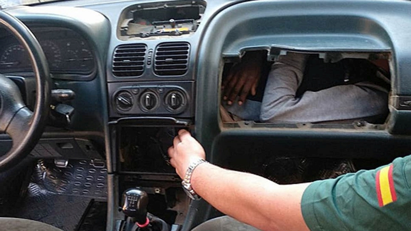 Pro policisty jsou takové zákroky stále častějším koloritem a o bizarní případy se neváhají podělit. Mezi ty nejpodivnější případy pašování na hranici Melilly patří objev zdokumentovaný obrázky níže. Jeden z uprchlíků nasoukal celé tělo pod palubní desku do prostoru přímo před spolujezdce. Kluk ve věku 12 let koukal ven přes uzavíratelnou odkládací schránku.