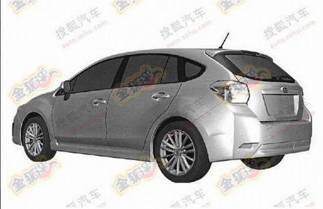 Subaru Impreza XV, patrně pro rok 2012, na patentových snímcích po boku již odhaleného hatchbacku
