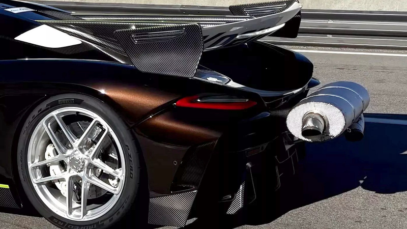 Do Států se totiž vypravil i Koenigsegg, a to se svou novinkou Sadair's Spear. Švédové si řekli, že když už jsou v Americe, zamíří i na okruh, kde svého času stanovili jeho rekord, než jim ho nedávno vzal Czinger 21C. Jak nicméně říká Christian von Koenigsegg, jediný možný termín připadal na den, kdy platil onen hlukový limit. Proto musel být vůz osazen velmi nápadným tlumičem instalovaným za vůz. To pochopitelně narušilo jeho aerodynamiku, stejně jako odvod výfukových plynů.