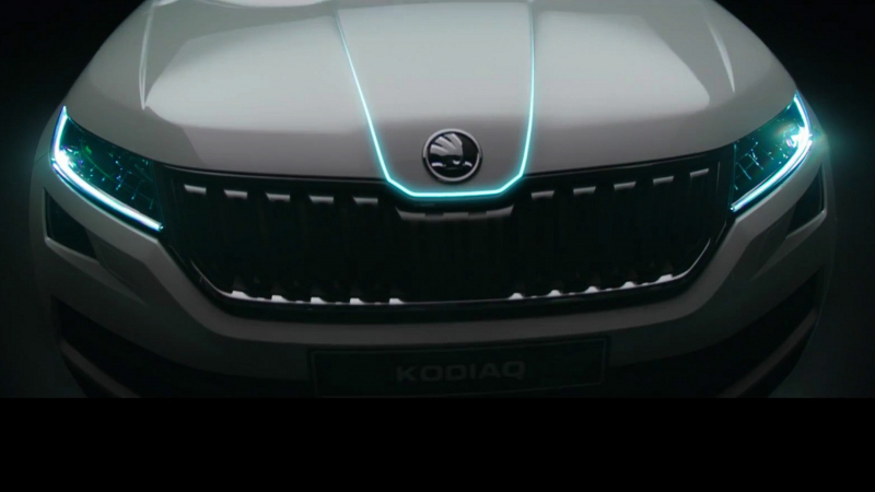 Ačkoli se videa zjevně zcela záměrně snaží navodit dojem, že ukazují části Karoqu, toto není Karoq. Kamera se chytře pohybuje kolem vozu, který vypadá jako SUV toho ražení a svými designovými prvky odpovídá viděnému, realita je ovšem jiná - před kameru byl postaven Kodiaq, který je pouze specificky snímán, aby to nešlo snadno poznat. A krom toho, že to víme, protože jsme Karoq viděli, vám můžeme nabídnout i obrazový důkaz - po zesvětlení obrázků z videa na vás vykoukne i označení vozu na přídi - Kodiaq.