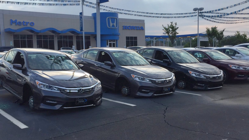 Dealertsví Hondy v Severní Karolíně ohlásilo ukradení dílů a poškození 30 aut, kola však zmizela „jen” ze čtyř z nich. Zloději patrně chtěli ještě víc a byli vyrušeni...