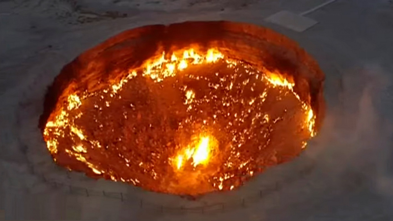 Jestli to tak berou v Turkmenistánu, netušíme, my spíše nevíme, jestli se smát nebo kroutit hlavou. Snad největší část propagandistického videa tvoří rádoby hrdinná jízda až do místa, které si říká Brána pekla. Kráter s původním turkmenským názvem Darvaza leží v poušti Karakum. Díra v zemi hoří unikajícím zemním plynem a přítmí plameny poskytly dokonalou kulisu pro letecké záběry s jak jinak než umělým zvukem motoru Berdymuhamedova vozu.