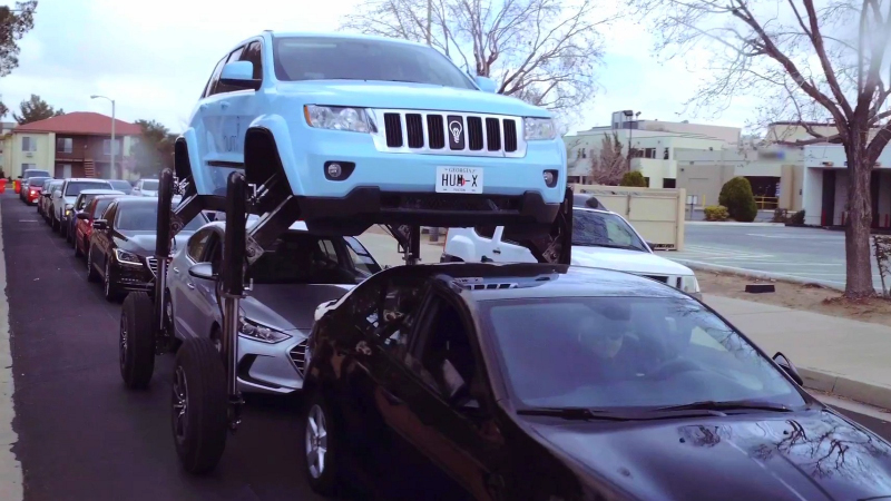 Fungují tak, že stiskem tlačítka auto pomocí hydraulických pístů zvýší svou světlou výšku na téměř dva metry a také zvětší rozchod kol tak, aby mohlo doslova nadjet ostatní auta. Co vidíte na videu níže, je opravdu skutečné, nebylo použito žádných počítačových triků.