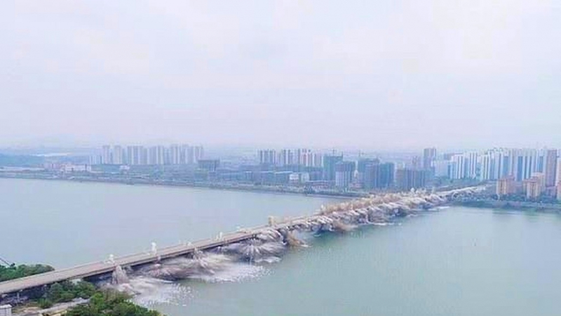 V Číně vyhodili do vzduchu most uprostřed města. Je to spektakulární podívaná