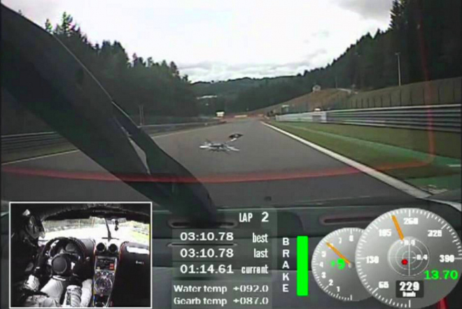 Vůz měl totiž problém se vejít do hlukových limitů platných ve Spa a naplno absolvoval pouze tréninková kola. Právě z těch pochází přiložené záběry s výše zmíněným časem a ze samotného videa je zřejmé, že rychlost v některých místech mohla být vyšší. Pozdější pokusy už nebyly realizovány, neboť vůz svým hlukem navzdory úpravám výfuku na poslední chvíli překračoval limit 103 dB.