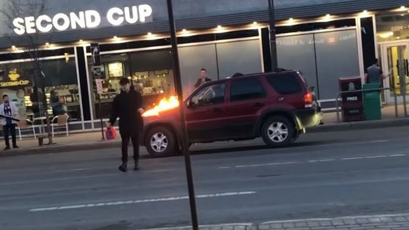 Děsivé záběry psychicky zjevně labilního muže s benzínem a zapalovačem v ruce vypadají jak z natáčení hororového filmu, byla to ale realita jednoho všedního edmontonského dne.