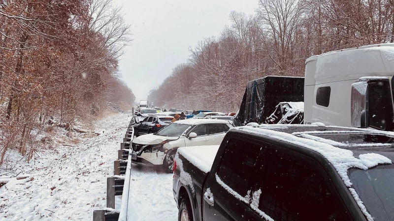 Něco takového se muselo seběhnout i na silnici mezistátní silnici I-70 v americké Indianě, příznačně poblíž města zvaného Terre Haute (otrocky z francouzštiny Vysoká země), kde došlo k řetězové havárii, do níž se připletlo víc jak 100 aut. Ze záběrů hasičů se nezdá, že by sněhu bylo o moc víc než v Nohavicově songu, nedostatečně upravená silnice a nepřipravení řidiči (takže samý překvapený) ale udělali své. Podle fotek to vypadá na slušné rošambo, nárazy se ale naštěstí odehrály v nižších rychlostech, a tak nikdo nepřišel ani k velkým zraněním.