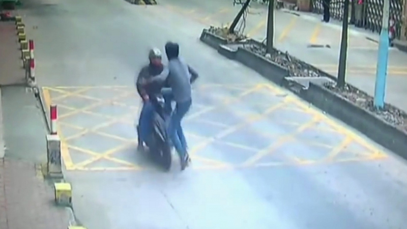 Tuto akční scénu z čínské provincie Kuang-tung raději nedoporučujeme opakovat, skoro se divíme, že se ani jednomu z aktérů nic vážnějšího nestalo. Ale jistě si dokážete představit, co by kdy okradenému dodala policie. Oznámení o odložení případu?