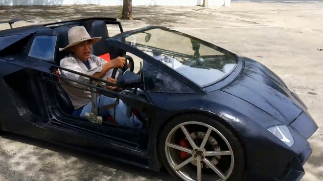 Farmář, kterého můžete vidět na záběrech níže, si nemohl si dovolit skutečný vůz ze Sant'Agaty, A tak s ve své dílně postavil zmenšenou napodobeninu sporťáku Lamborghini Aventador Roadster. Domácí automobilový konstruktér si dal si záležet a tím zařadil své dílo mezi ta povedená, která se více než o show snaží o praktickou funkčnost.