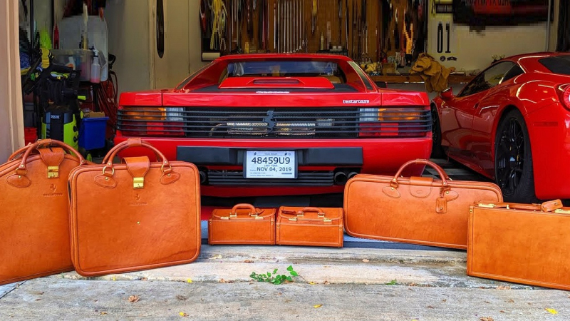 Kvalitu italského brašnářství z roku 1987 ukázal Dan - majitel rudé Testarossy i s dodnes zánovní sadou šesti originálních zavazadel. Komplet poctivě následuje rozměry prostorů před kabinou a uvnitř ní. Pod přední kapotu se skutečně vejdou čtyři tašky, ale Dan musel zavzpomínat na hru Tetris, aby cvičně uložil hnědé kufry na místo určení. Dva zbývající kusy hezky zapadly za odklopná sedadla dvoučlenné posádky. Výrobce zde připravil popruhy se suchým zipem, aby věci nelétaly uvnitř automobilu.