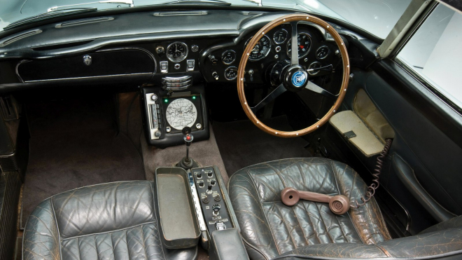 My se nicméně zaměříme na trochu jiný klenot Puglieseho sbírky, a to Aston Martin DB5. Konkrétně pak na vůz se šasí DP/216/1, který se poprvé objevil v bondovce Goldfinger a platí za dodnes nejslavnější auto Jamese Bonda. Pro tento film vznikly celkem čtyři vozy určené pro natáčení a pozdější propagaci, tím nejzajímavějším z nich je ale jediný exemplář osazený veškerými „hračkami” přímo od pana Q. Mezi ty patřilo třeba vystřelovací sedadlo nebo rozprašovače oleje a kouře. Filmaři měli auta pouze zapůjčená a automobilka je po natáčení všech těchto propriet zbavila a prodala, nový majitel ovšem veškeré tyto prvky nechal naistalovat zpět.