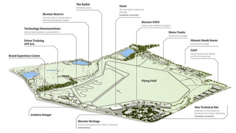V sousedství Bicester Heritage se totiž rodí automobilový resort Bicester Motion o výměře 180 hektarů. Na ploše o rozloze cca 45 pražských Václavských náměstí vzniká hotel, kongresové centrum, dílny a zážitkový okruh. Podle slov investorů se území stane „prvním zážitkovým automobilovým areálem, kde se návštěvníci mohou plně ponořit do šíře automobilové kultury. Oblast bude zaměřena na zdokonalování jízdních zážitků a demonstraci high-tech inženýrství stejně jako na letectví, lidské zdraví, blahobyt, kulturu a ubytování.“