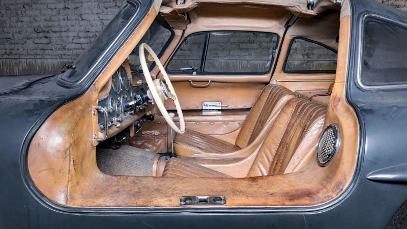 Tento Mercedes-Benz 300 SL se prodal za více než 100 milionů korun, jednoduše proto, že od roku 1956 nebyl renovován. To nejspíš předurčuje jeho další osud, jezdit už asi nebude. Foto: Artcurial, tiskové materiály