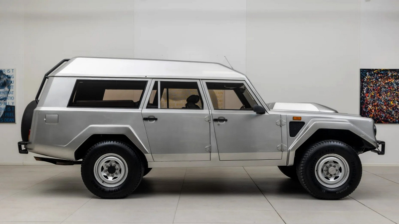 Pouze jedno „Rambo Lambo“, jak je LM002 přezdíváno, se dočkalo konverze na klasické SUV. Tu si objednal brunejský sultán, po něm pak vůz vlastnil bývalý šéf BMW a VW. Nyní může být váš, rozhodně však ne levně. Foto: Bring A Trailer, tiskové materiály
