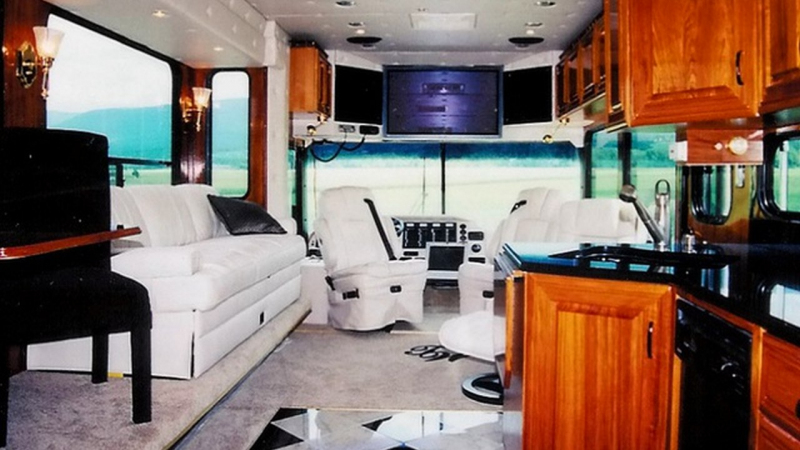 Julie, která má konstrukci interiéru na svědomí, zašla až tak daleko, že dovnitř vecpala i velkou hydromasážní vanu. Cokoli menšího než to považujte za standard - nechybí tu nic od velké kuchyně, obýváku, který se může proměnit v zábavní centrum, pochopitelně komfortní toalety a ložnice. Provedení vnitřku pak připomíná skutečně spíše jachty svým rozsáhlým použitím teakového dřeva a jak už jste jistě pochopili, není to pouze hra na něco, čím vůz není.