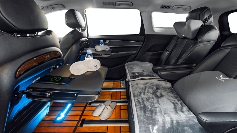 Prostřední řada je přitom posuvná, zatímco tu poslední lze sklopit do podlahy. V té chvíli zavazadelník dokáže pobrat více než 1 500 litrů. Kromě toho Wuling pustí do prodeje i luxusní čtyřmístnou variantu, kdy dozadu se nastěhují sklopná „kapitánská“ křesla a interiér se svým luxusem celkově posune o úroveň výše. Sama sedadla půjde posunout až o 560 milimetrů dozadu, načež v kombinaci s nezávislou podporou nohou mohou vytvořit lůžka. Mimo to je k mání také jemné kožené čalounění či ortopedická sedadla pro první a druhou řadu.