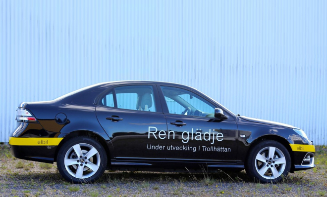 Minulý týden skoro bankrot, tento „nový” model. To je život NEVS, vlastníka Saabu. Elektrická 9-3 má zvládnout 200 km na nabití a rychlost až 120 km/h.