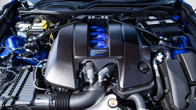 RC F je jedním z posledních aut na světě, které pohání atmosféricky plněný pětilitrový osmiválec. Letos v listopadu jeho výroba definitivně končí. Foto: Lexus