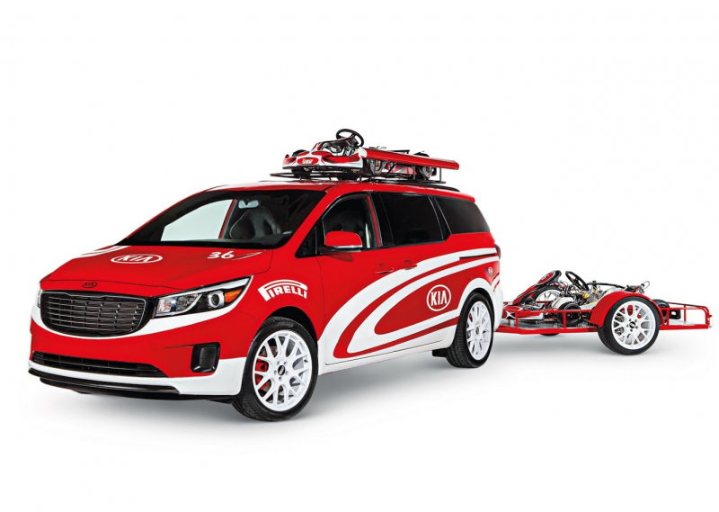 Kia Sedona Karting je koncept MPV se zahrádkou a přívěsem speciálně pro motokáry