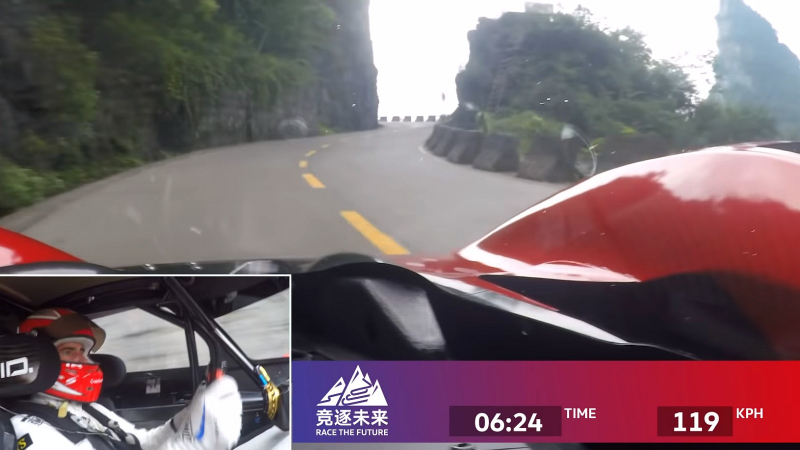 Hora Tianmen kapitulovala v oficiálním čase 7 minut 38,585 sekund při průměrné rychlosti 85,4 km/h. Tím se Němci pochlubili už v září, záznam z rekordní jízdy ale chyběl. Ten byl uvolněn až nyní a neskutečným tempem chvílemi způsobuje závratě. Záběry místy připomínají zrychlený film a milimetrově přesnému kroucení volantem na hraně prudkých srázů je třeba vyseknout poklonu.