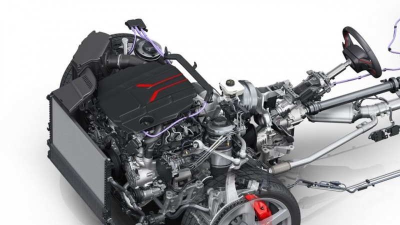 Audi těchto výsledků dosáhlo nejen úpravami mild-hybridního 48voltového systému, který dokáže přihodit až 8 kW výkonu a umožňuje vozu „plachtit“ po dobu 40 sekund při vypnutém dieselu. Zlepšena byla také odezva elektrického kompresoru, který se zvládne roztočit na 65 tisíc otáček za 0,3 sekundy. Zároveň zasahuje častěji a v širším pásmu otáček, což eliminuje prodlevu klasických turbodmychadel a vylepšuje odezvu pohonné jednotky.