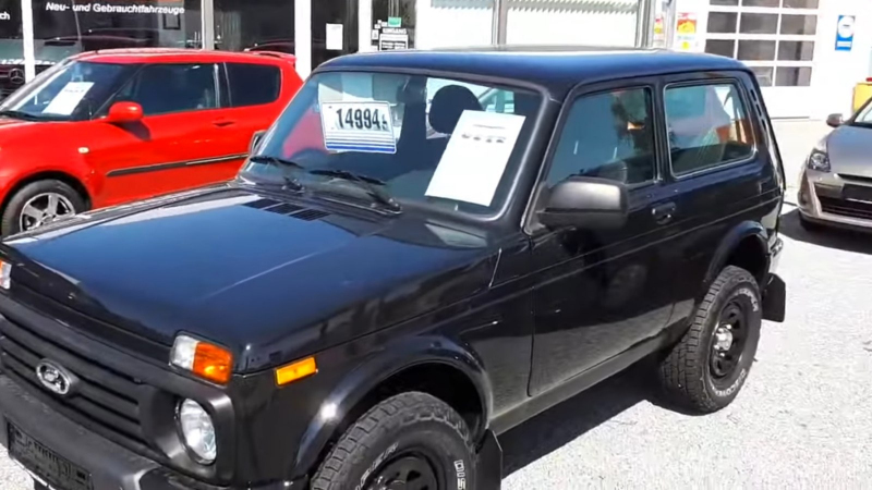 Lada Niva je v Německu dále k mání, oproti domovině však za více než dvojnásobné ceny. Foto: Das Leben in Deutschland@YouTube