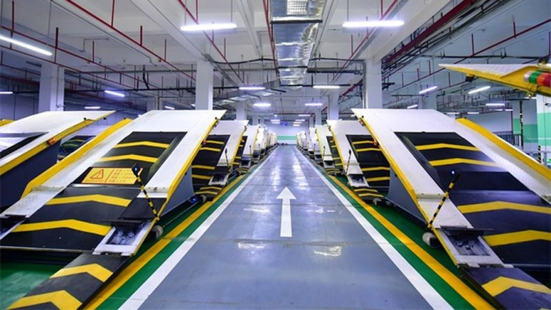 Čínský Chongqing používá nový typ parkoviště, kde auta parkují na speciálních platformách umožňujících náklon o 30 stupňů. Stejný prostor tak pojme o 70 % aut více