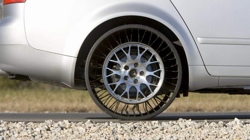 Právě těmto starostem chce už dlouho učinit přítrž Michelin. Pneumatikářský gigant již před mnoha léty přišel s novým typem obutí zvaným Tweel, který pro správný výkon své funkce nepotřebuje dohustit vzduchem vůbec. Místo toho pneumatika (podržíme se toho termínu, ale bez vzduchu uvnitř už na tohle označení úplně nesedí) spoléhá na vertikální žebra z odolné pryskyřice, jenž spojují běhoun a střed sloužící rovnou k uchycení na náboj kola. Právě od této koncepce je ostatně odvozen název nové gumy - Tweel je složenina slov Tyre (pneumatika) a Wheel (kolo).