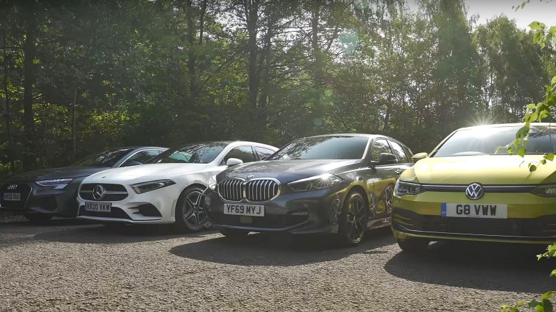 Překvapivě kontroverzně přistoupil ke srovnání čtyřech německých kompaktů Mat Watson z Carwow. Naplno to neříká, z jeho slov je ale jasně patrné, že nic než falešný pocit luxusu vám dnes zejména prémiové německé značky v kompaktní třídě neprodají. Foto: Carwow@Youtube